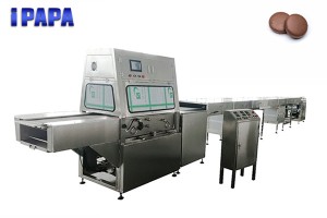 Chocolate Enrobing Line is to product chocolate on various food such as biscuit, wafers, egg rolls, cake pie and snacks etc to form variety of unique chocolate food.